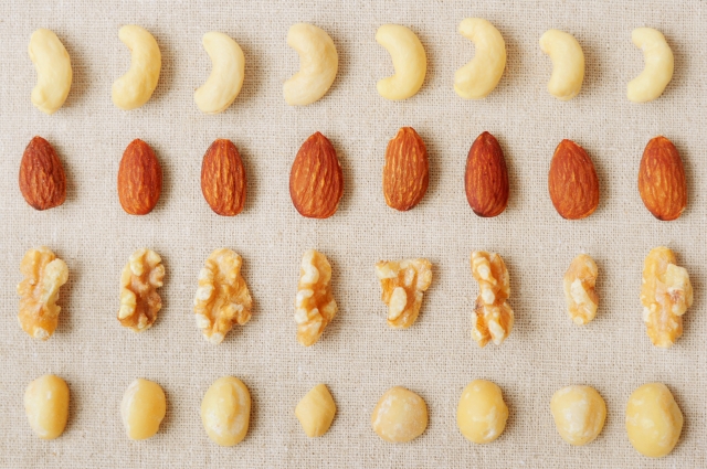 種類は、アーモンド、クルミ、カシューナッツ、マカダミアナッツ、ピーカンナッツ、ヘーゼルナッツ、ピスタチオです。